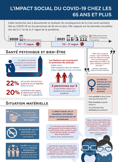 Ce projet, financé par la Fondation Leenaards, a été lancé en janvier 2021 et se terminera en octobre 2022. Il vise à analyser l’impact social de la crise socio-sanitaire liée au Covid-19 sur les personnes âgées de 65 ans et plus (65+).